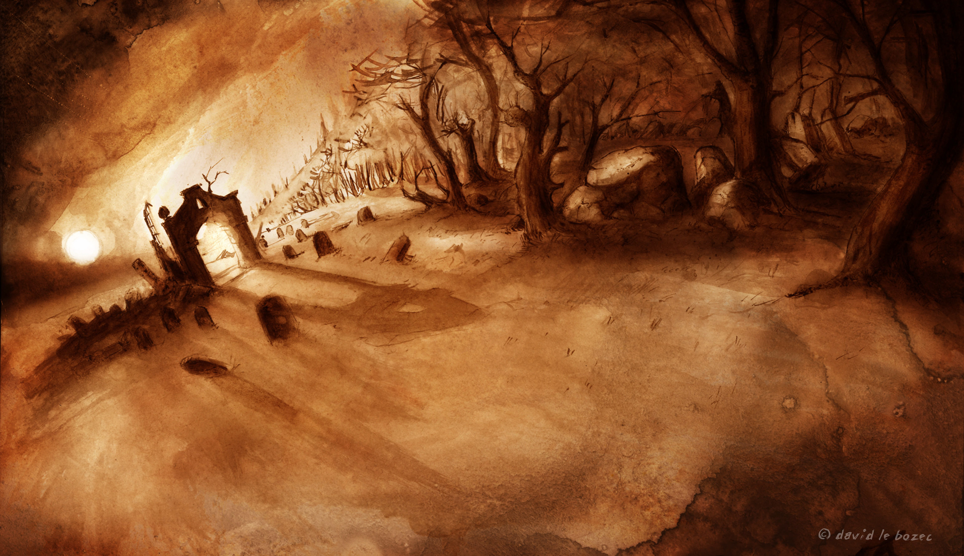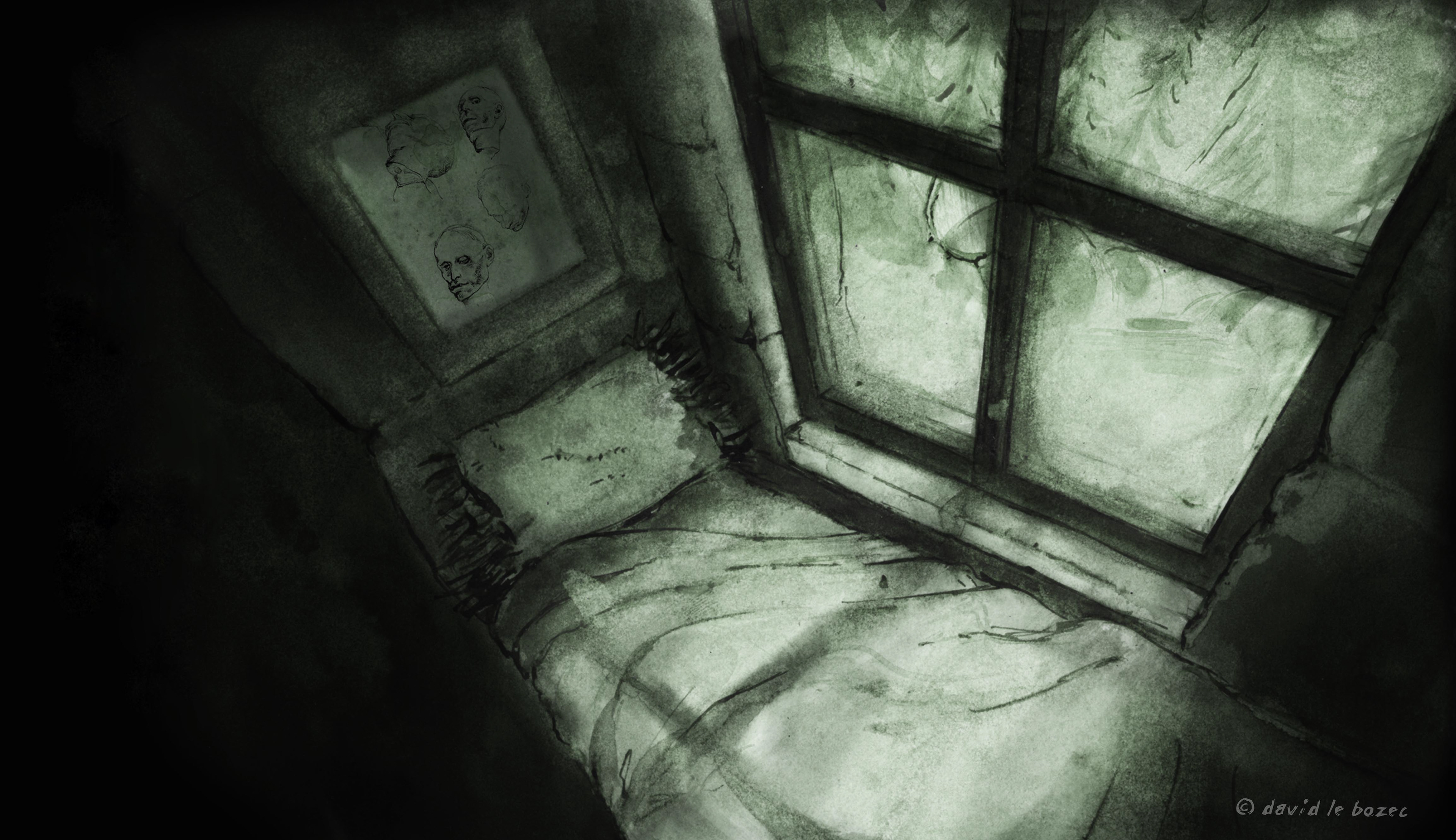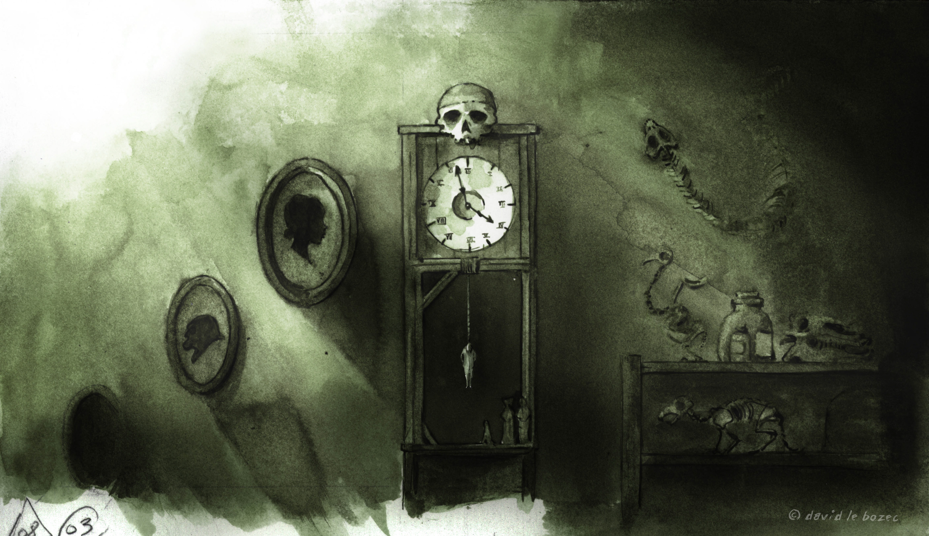 Backgrounds & still images I painted for my short film (Ink on paper). In collaboration with Richard Mithouard for the layout.