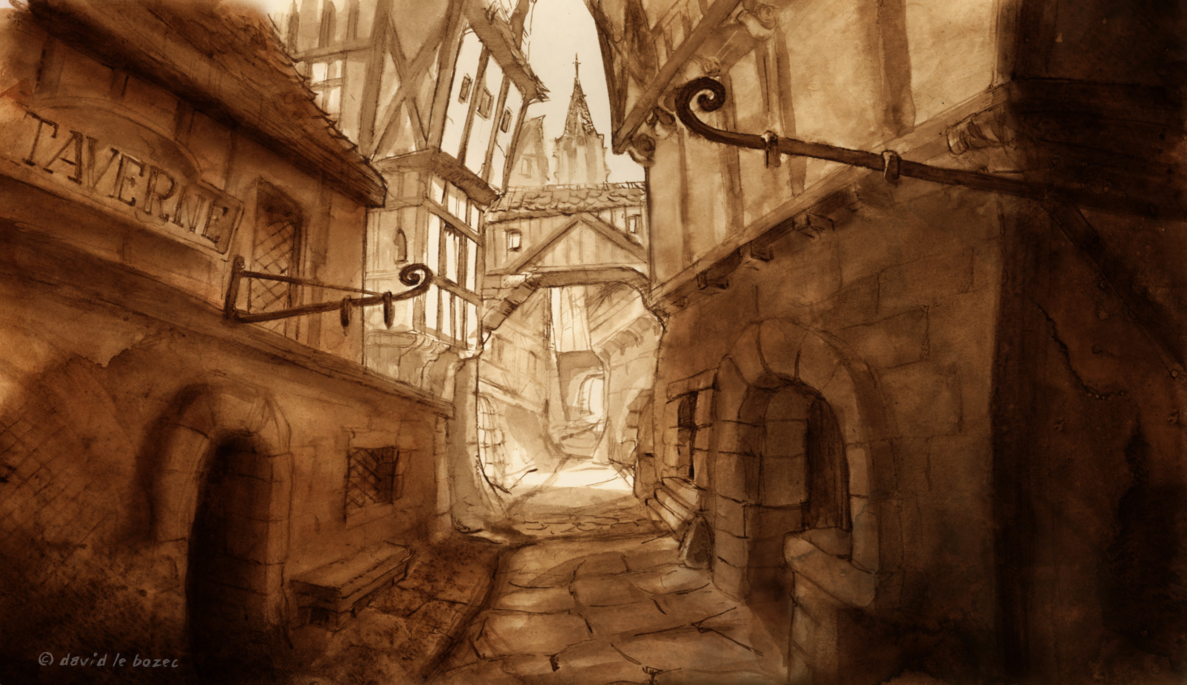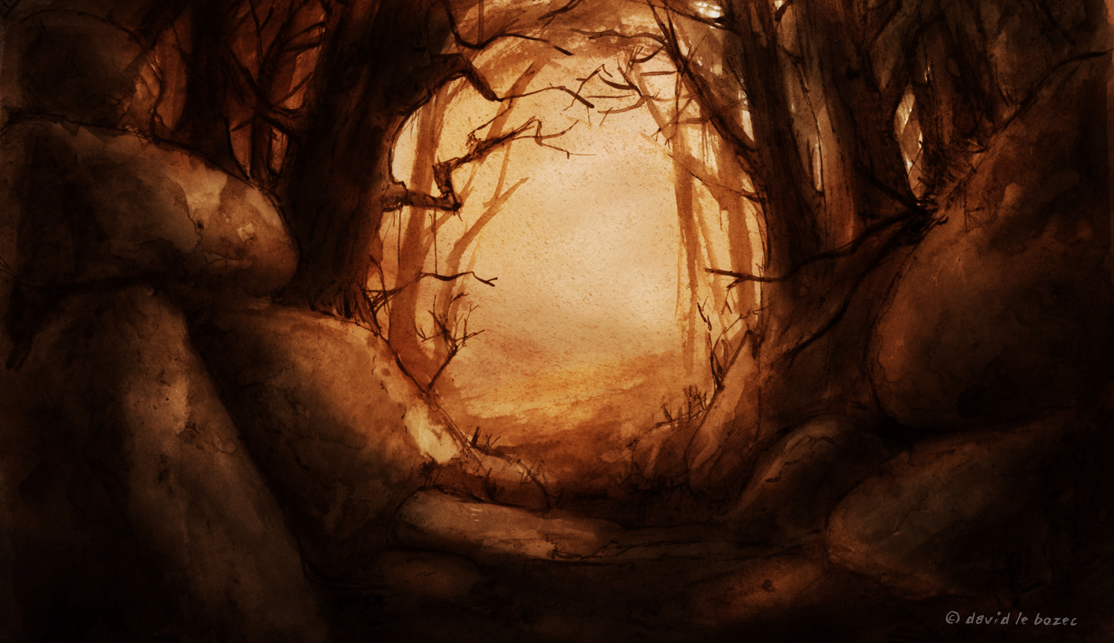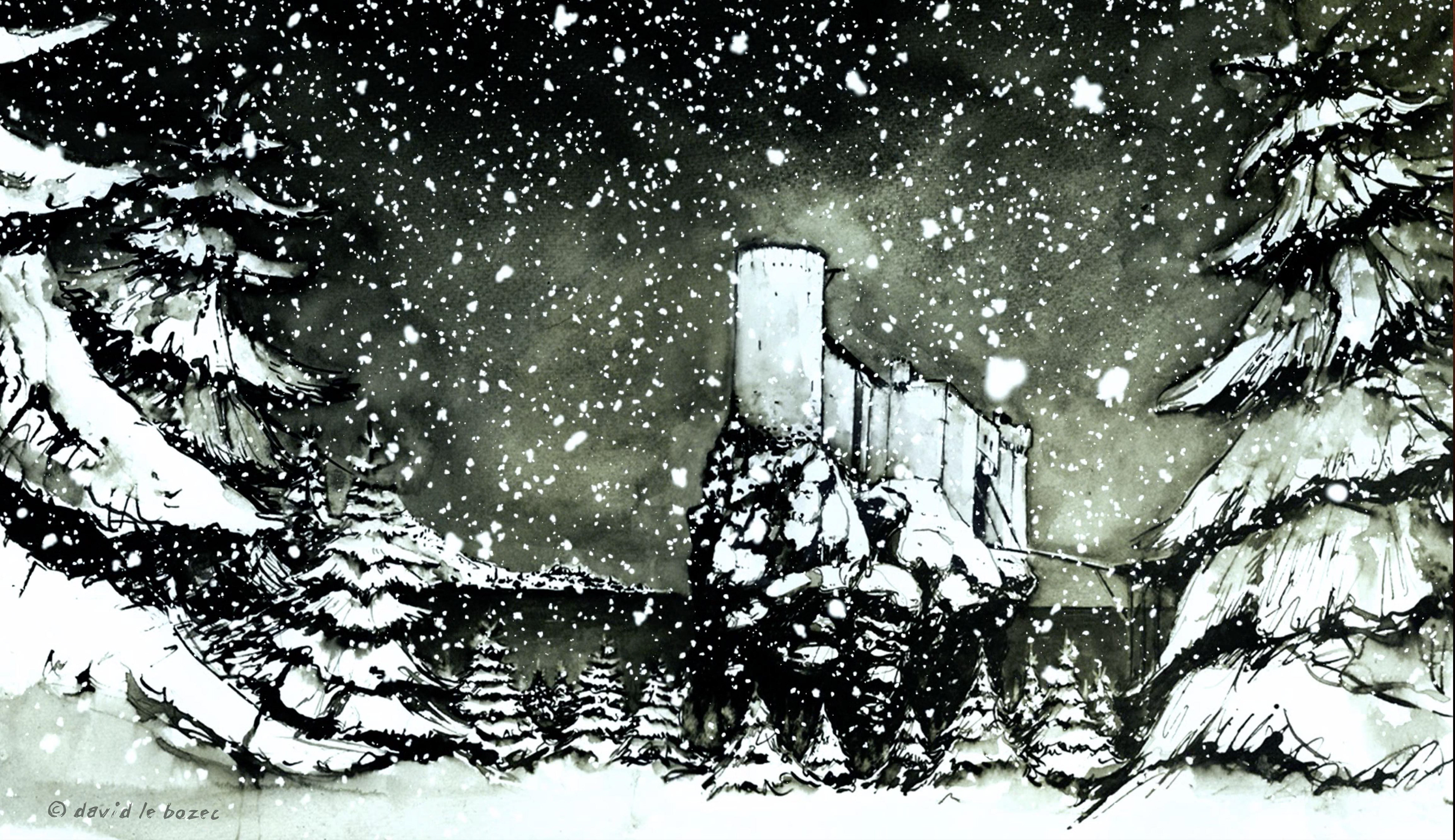 Backgrounds & still images I painted for my short film (Ink on paper). In collaboration with Richard Mithouard for the layout.